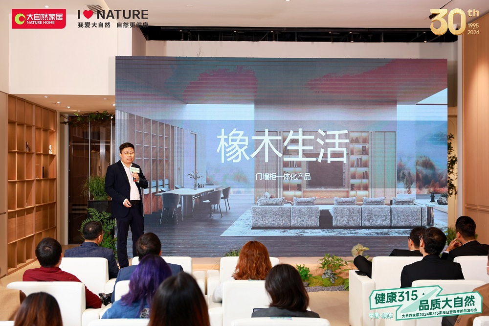 (大自然家居集團產品研發中心總監申曉亮發布2024新品“橡木生活”系列)