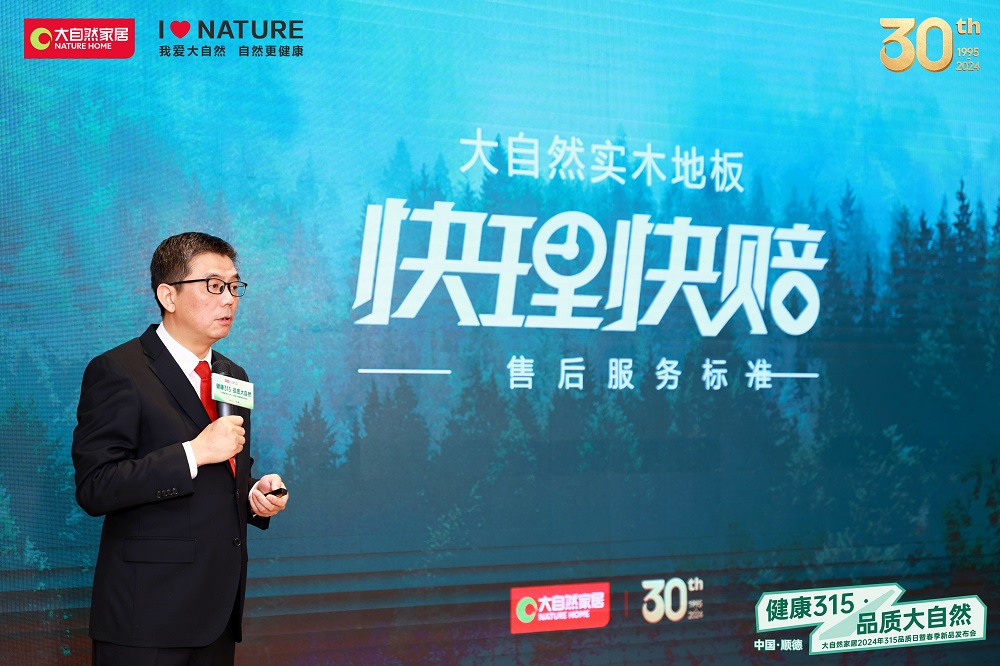 (大自然家居集團副總裁林皓發布《大自然實木地板快理快賠服務標準》)