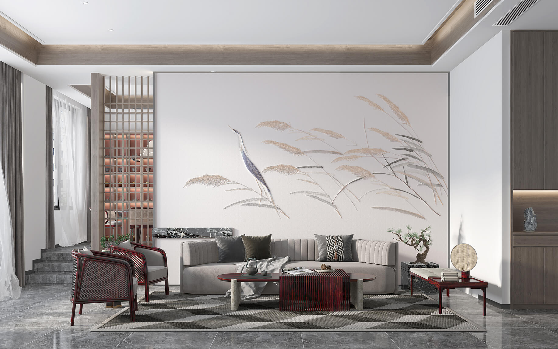 新中式精致、華麗、有章法,是一種獨特的東方美學,保留了傳統中式的同時簡化了繁復的裝飾,均衡、端正,又崇尚自然,是對品質生活的理解和尊重