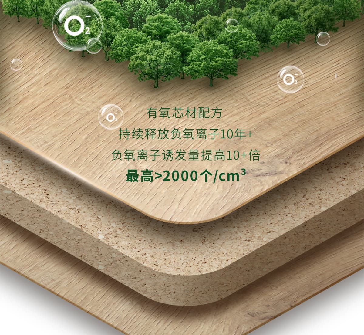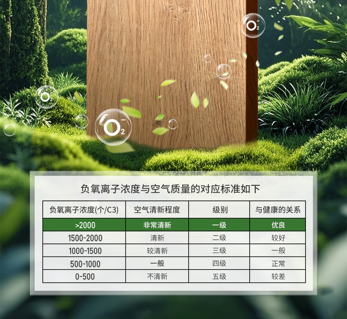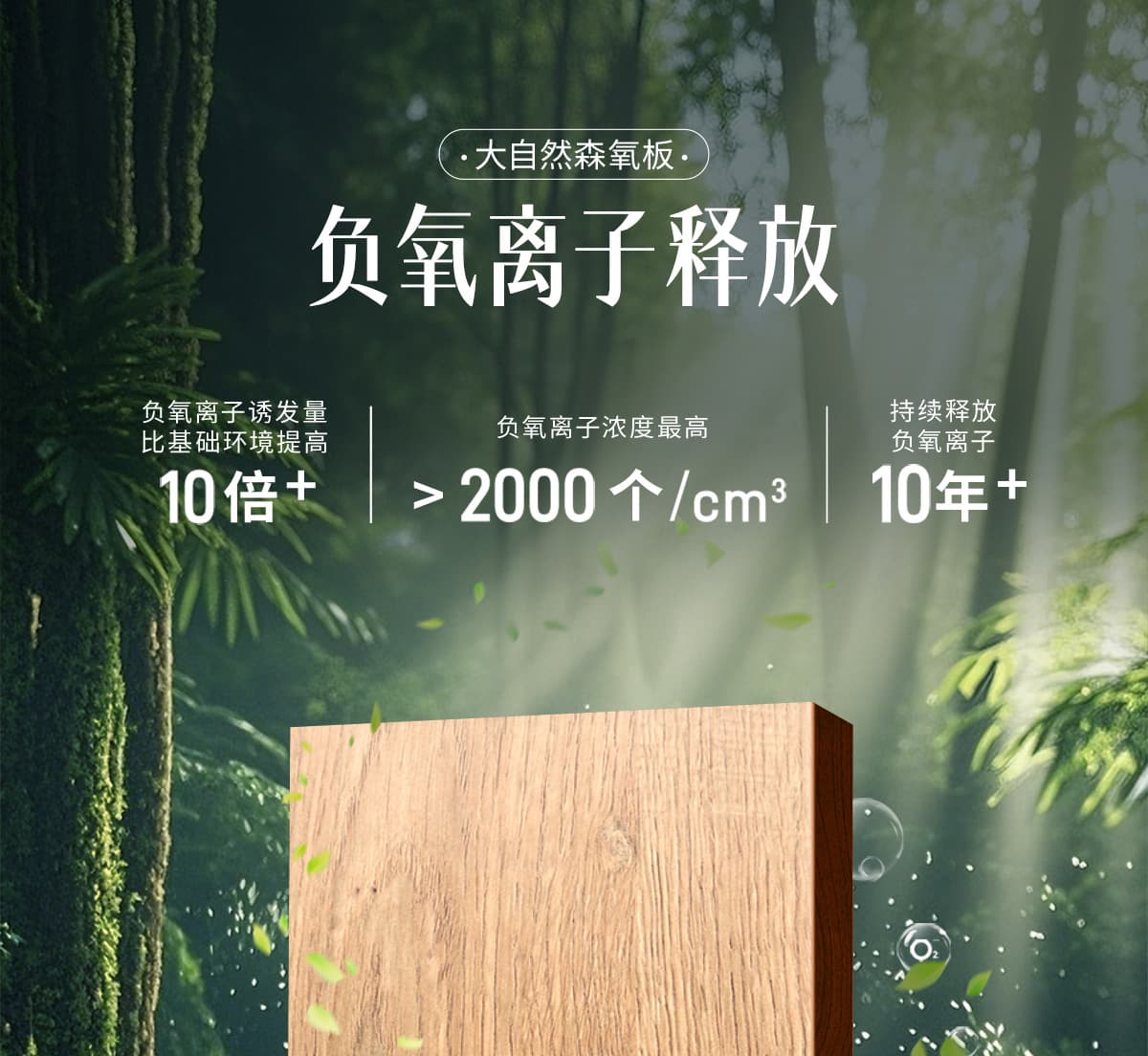 誘發空氣負離子量 比基礎環境提高10倍+