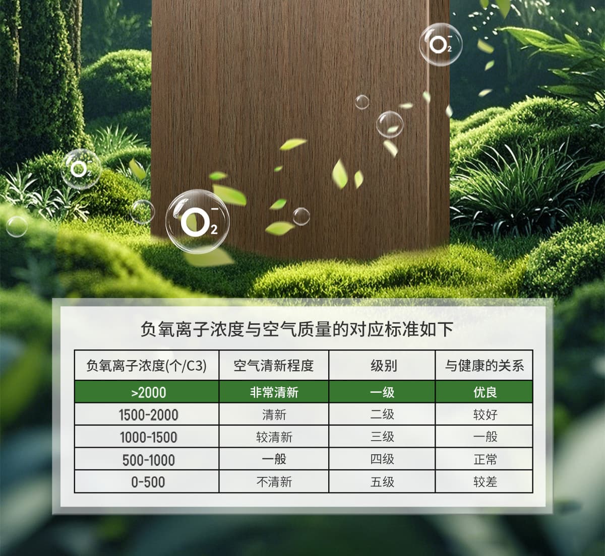 誘發空氣負離子量 比基礎環境提高10倍+