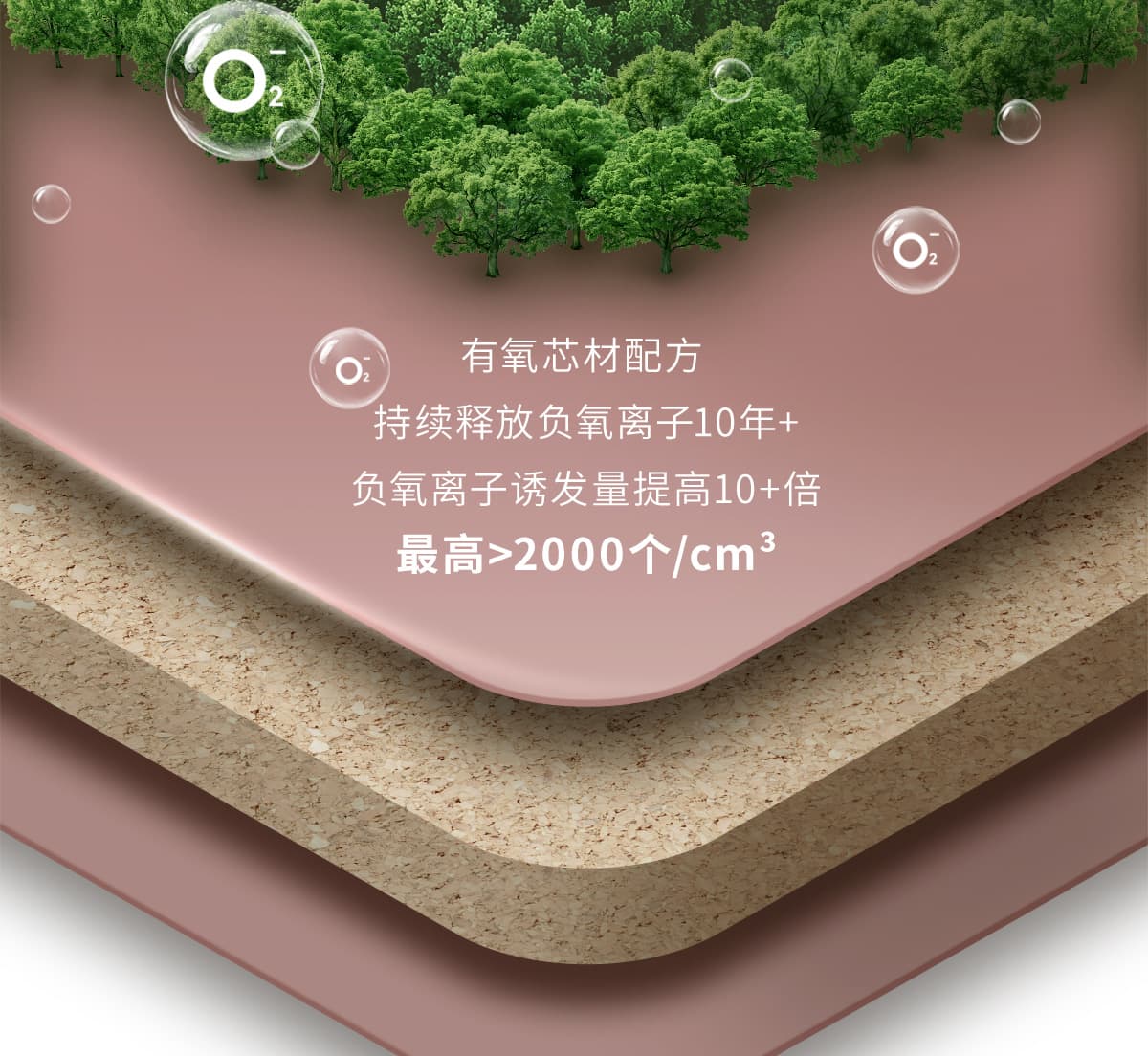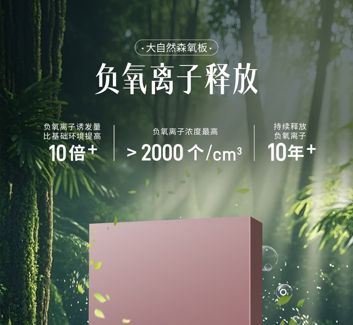 誘發空氣負離子量 比基礎環境提高10倍+