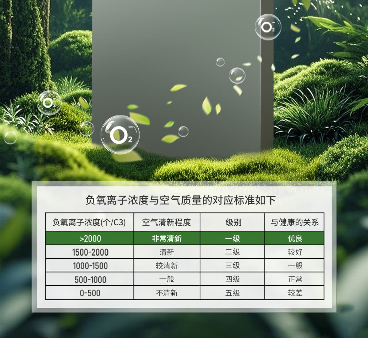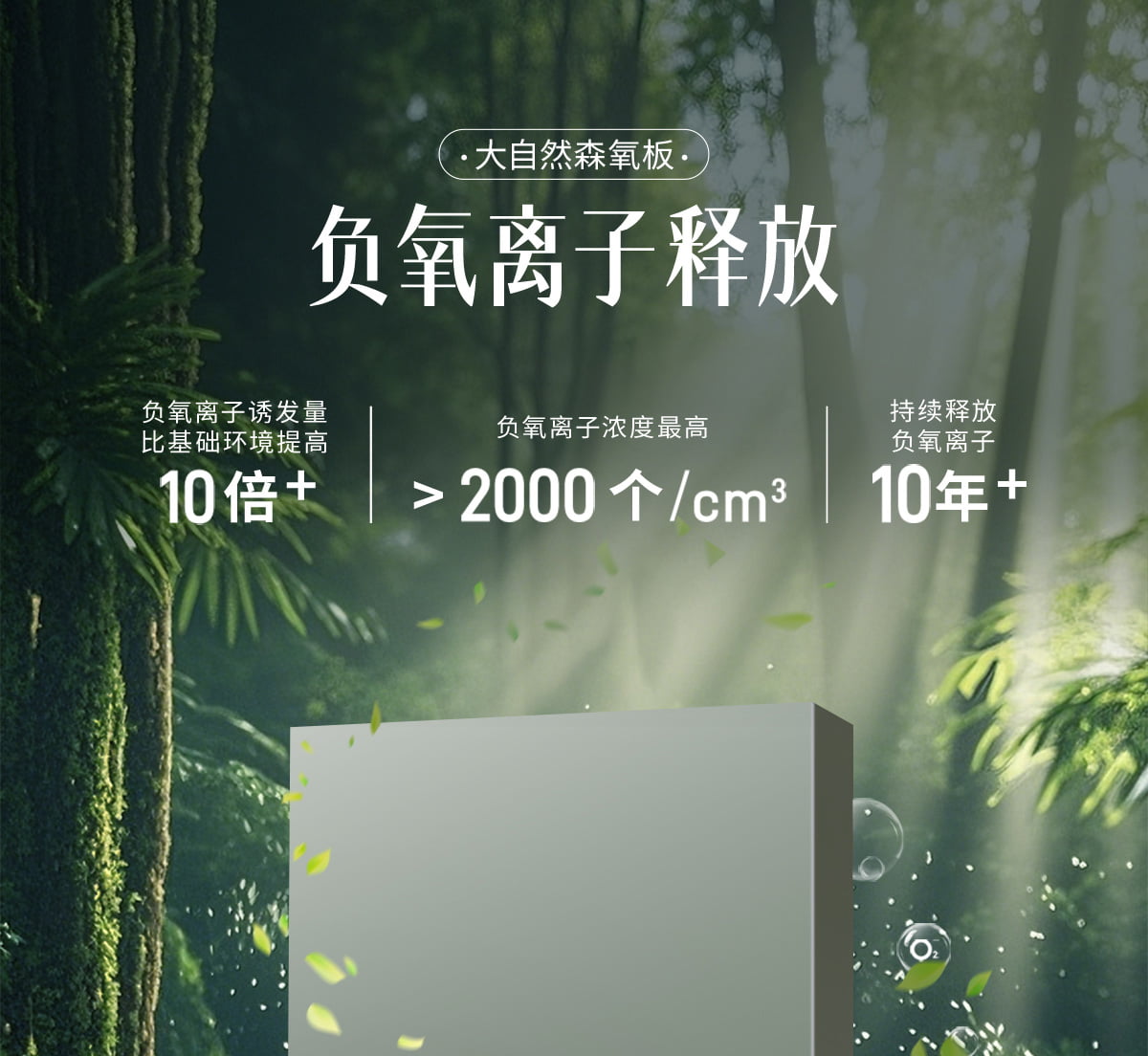 誘發(fā)空氣負離子量 比基礎(chǔ)環(huán)境提高10倍+